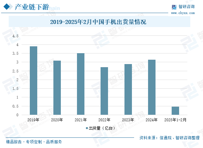 中国电声器件行业产业链下游分析 早期随着移动通讯技术的发展和智能手机的普及,手机出货量经历了快速增长阶段,从功能机向智能机转换过程中,市场需求持续增加。近年来,我国手机出货量呈现波动变化。2019-2022年,我国手机出货量呈波动式下降。但2023年以来,我国手机出货量有所回升,2024年,我国手机出货量达3.14亿部,同比增长8.7%。2025年1-2月,我国手机出货量约为0.47亿部。随着手机出货量的增长,对电声器件中的听筒和扬声器的需求数量也相应增加。每部手机都需要配备听筒用于通话接听,以及至少一个扬声器用于播放铃声、多媒体音频等。特别是随着智能手机成为人们主要的多媒体娱乐设备,对扬声器的音质、音量等要求不断提高,促使手机厂商增加对高品质扬声器的采购,从而带动了电声器件行业的生产规模扩大。